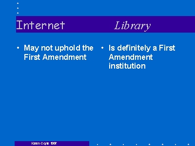 If it is decided that cyberspace isn't public space, this could have disastrous consequences for our future. Increasingly, our information resources are going to be transmitted digitally. Any restrictions on digital networks will mean that certain ideas cannot be communicated at all. Even though libraries uphold free speech and intellectual freedom, the institutions that provide the information to the libraries must be equally unrestricted if the First Amendment is to mean anything at all in the future.