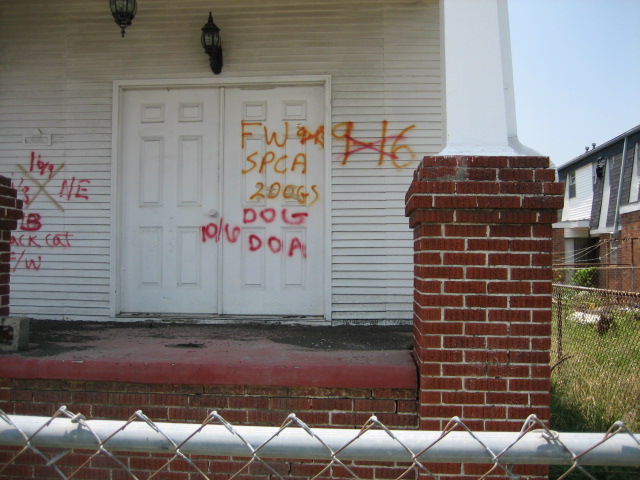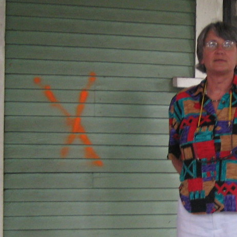 Every house, every structure, in New Orleans has its symbolic "x" marked by the crews who checked them for inhabitants after the waters receded. Along one street I could watch the progress of those crews by the dates written by the mark: 9/14, 9/15/, 9/21. In parts of town that flooded only mildly (can you say that?), the marks are all identical: an "x", a date, and a zero. In other parts of town, the marks are each eerie statements of the storm's devastation: "Possible body." "1 inside, 1 outside." "SPCA – 2 dogs," and later "dog DOA." Other signs are testaments to human spirit: "June & Bill are OK!" or with addresses in Texas.