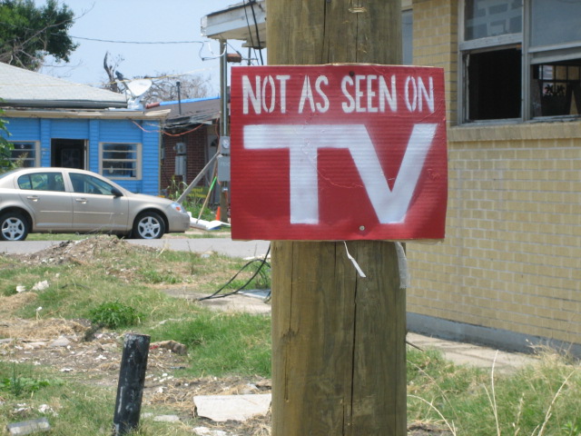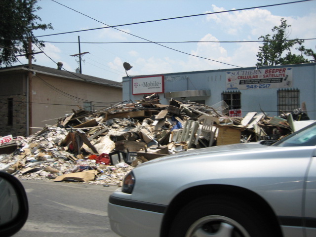 The streets are lined with cheaply-made signs for every kind of construction (and destruction) service: roofing, demolition, mold removal, plastering. Yet it's every man for himself. The only organized efforts that are visible are those of church groups and the neighborhood groups that are forming. Although their efforts are heartwarming, and greatly needed and appreciated, the city cannot be rebuilt by hard-working citizens and enthusiastic volunteers. This is not a "barn raising" situation, folks, it is a disaster on a huge scale. It is an ONGOING disaster, and the longer it goes on the less likely that the city will be able to recover.